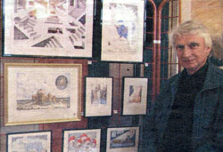 Une exposition où les dessins de l'un côtoient les sculptures de l'autre. Le Réveil Normand - 15 juillet 1999 – Extrait Deux artistes sont à l'honneur à la galerie Arnaud de Verneuil-sur-Avre, dont Claude Fromageot présentant une quarantaine d'œuvres. Le peintre est un habitué de lieux. Il se consacre pleinement à son art depuis un quart de siècle. Un éclair de malice dans les yeux, il transmet au travers de son geste toute la désinvolture de sa pensée. Avec minutie, il aime la répétition du trait à l'encre de chine, succession fastidieuse de lignes qui, peu à peu, deviennent matière et mouvement. L'humour guide souvent sa main, toujours avec tendresse et douceur, sans choquer outre mesure. Selon son humeur l'aquarelle ou l'acrylique s'avèrent parfois ses plus proches alliées, notamment dans l'expression de ces nombreux paysages percherons qu'il affectionne tout particulièrement… La Dépêche - 15 juillet 1999 – Extrait – Une exposition passionnante. …Claude Fromageot est de ceux qui livrent le meilleur d'eux-mêmes faisant appel à des techniques aussi variées que l'aquarelle, l'acrylique, l'encre ou la gouache. Sa peinture s'appuie à la base sur une réelle maîtrise du dessin. Peignant aussi bien des paysages maritimes, comme Matin sur le Port avec une gouache du plus bel effet, il s'exprime également avec beaucoup d'humour dans des encres d'une extrême finesse qu'il intitule Hêtre femme, Livre seins, ou portrait de Madame Censure. Paris-Normandie - 14 juillet 1999 – Extrait .…Claude Fromageot, professionnel des arts graphiques, s'adonne à toutes les techniques pour dessiner ou peindre : "Cela me permet de présenter des styles différents, mais également de varier mon travail, selon mon humeur : je ne m'imagine pas peindre toujours de la même façon, ce serait trop répétitif !". Très sensible aux paysages du Perche, il décrit également dans ses tableaux un monde futuriste où l'homme et la nature s'affrontent. Mais il sait "peindre la vie telle qu'elle est", il aime aussi s'amuser et jouer sur les mots au travers de ses dessins. La Dépêche - 31 décembre 1998 Galerie Brigitte Urier. Lire l'article - "Victime d'un puritanisme vernolien ?" La République du Centre - 10 décembre 1998 – Extrait Neuf peintres exposent à la Galerie Arnaud. Neuf peintres qui sont autant d'amis pour Brigitte Urier, directrice de la galerie. On connaît la persévérance de cette femme pour la défense de l'art dans le sud de l'Eure. Grâce à ses amis elle peut encore apporter au centre-ville ce rayon de soleil qui fait défaut à tous. Entre autres artistes que l'on retrouvera avec plaisir, on remarquera, de Claude Fromageot, les encres travaillées qui gardent leur impertinence positive en témoignant du talent de leur auteur. L'Echo - 18 septembre 1998 – Extrait Une exposition qui ouvre l'appétit ! L'Auberge de l'Abbaye à Thiron-Gardais. J.C. responsable de l'établissement a transformé son restaurant en galerie d'art. Le temps d'une exposition, une trentaine de dessins à la plume, des aquarelles et des gouaches sont accrochés dans la salle du restaurant. Tous sont signés du dessinateur et peintre Claude Fromageot .Bien que faisant appel à des techniques très variées, le travail du peintre s'appuie à la base sur une réelle maîtrise du dessin. Une variété qui se retrouve dans le choix des sujets. Du portrait à la nature morte en passant par le paysage, Claude Fromageot ne se cantonne dans aucun genre mais laisse s'exprimer librement son humeur. La République du Centre - 05 juin 1998 – Extrait Humour et application à Epistolairement vôtre à Verneuil sur Avre Titre de l'exposition : "Appelez-moi Maître si vous voulez…" C'est un clin d'œil basé sur la technique et l'humour que le peintre, d'origine parisienne, Claude Fromageot, propose à la Galerie Epistolairement Vôtre à Verneuil sur Avre. Professionnel des arts graphiques, ce sexagénaire a su garder toute la malice de sa jeunesse pour jouer avec les idées, parfois irrévérencieuses, qu'il met au service d'une technique du dessin irréprochable. A moins que cela ne soit le contraire. Personnage plein de verve et d'humour il a déjà exposé à chartres, à Paris et à la Ferté-Vidame. Ce dessinateur très méticuleux sait aussi peindre avec justesse des paysages qui ne manquent ni de charme ni de vie et qui s'inscrivent volontiers dans une démarche paradoxalement pleine d'application et de dérision. La République du Centre - 17 août 1987 Claude Fromageot : la technique au service d'une sensibilité. Parmi les nombreux exposants de cette onzième exposition des Amis de la Ferté-Vidame, Claude Fromageot est l'un des peintres à découvrir tant sa peinture, en dehors de toute considération technique, traduit une personnalité très forte. Sa spontanéité et sa générosité picturale peuvent devenir l'atout d'une réussite. Claude Fromageot nous plonge dans un univers où le trait devient le porte-parole d'une sensibilité à fleur de peau. Alain Fournier et lui auraient certainement lié une longue amitié. Tout est matière à suggestion, la réalité est transcendée dans un rêve empreint de poésie. Ses gouaches, ses aquarelles et ses encres de Chine traduisent une recherche approfondie doublée d'une technique impeccable. Il est de ceux qui livrent le meilleur d'eux-mêmes et qui apparemment ont quelque chose à dire. L.Z. La République du Centre - 27 décembre 1977 – Extrait Galerie Du Méridien. "Horizons", c'est le thème choisi par Mme Barbier pour l'exposition de groupe qu'elle organise en cette fin d'année avec le concours de cinq artistes. …Certaines œuvres ne sont pas exemptes d'un zeste de naïveté. Naïf, Claude Fromageot l'est un peu aussi dans ses encres, à moins que l'artiste ne soit facétieux. Claude Fromageot présente également de surprenantes aquarelles dans lesquelles les paysages se construisent en larges taches bien découpées. L